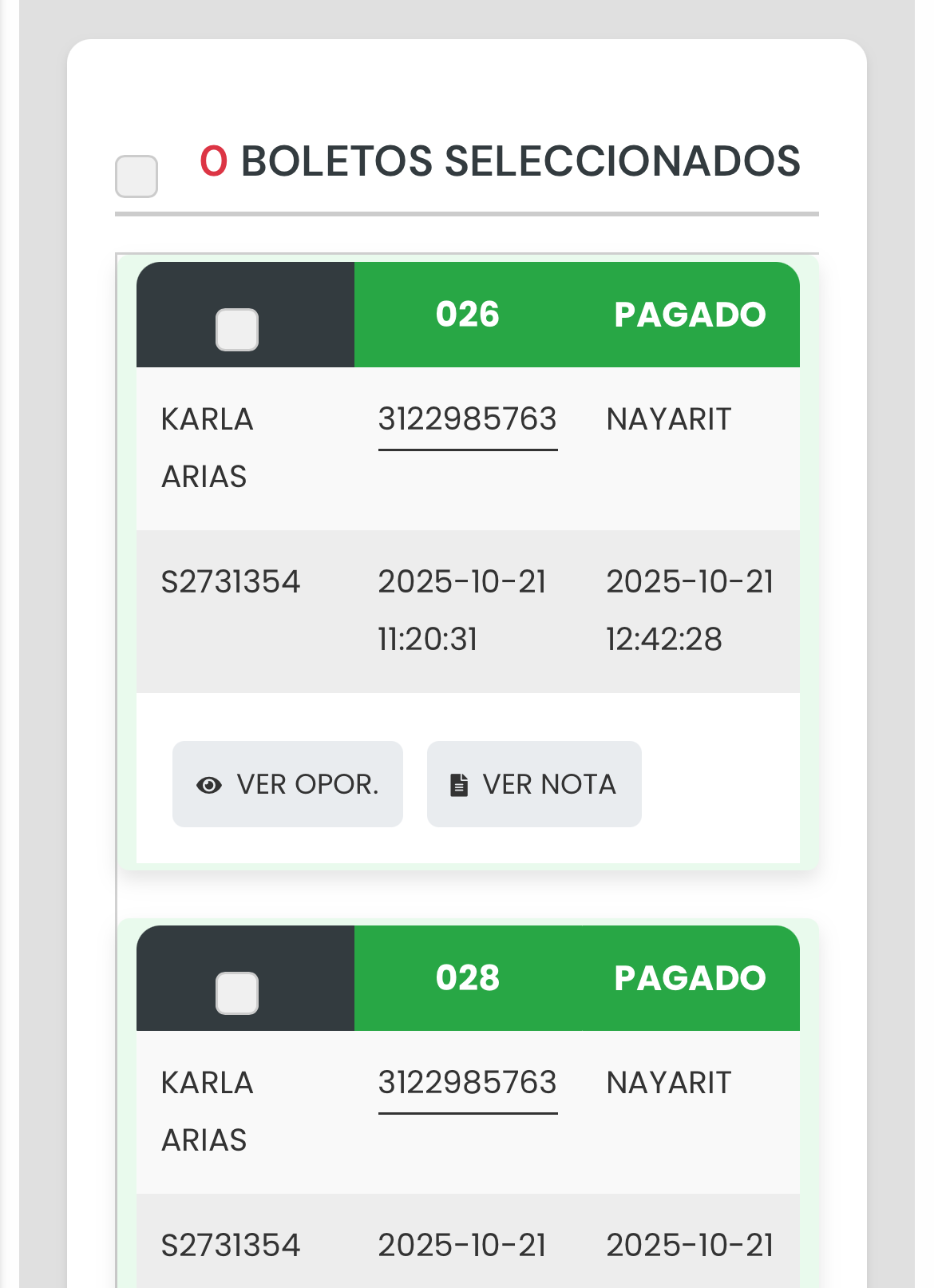 Con el verificador de boletos tus jugadores podrán buscar sus boletos por nombre, número, teléfono o folio, y ver al instante el estatus de su participación.
