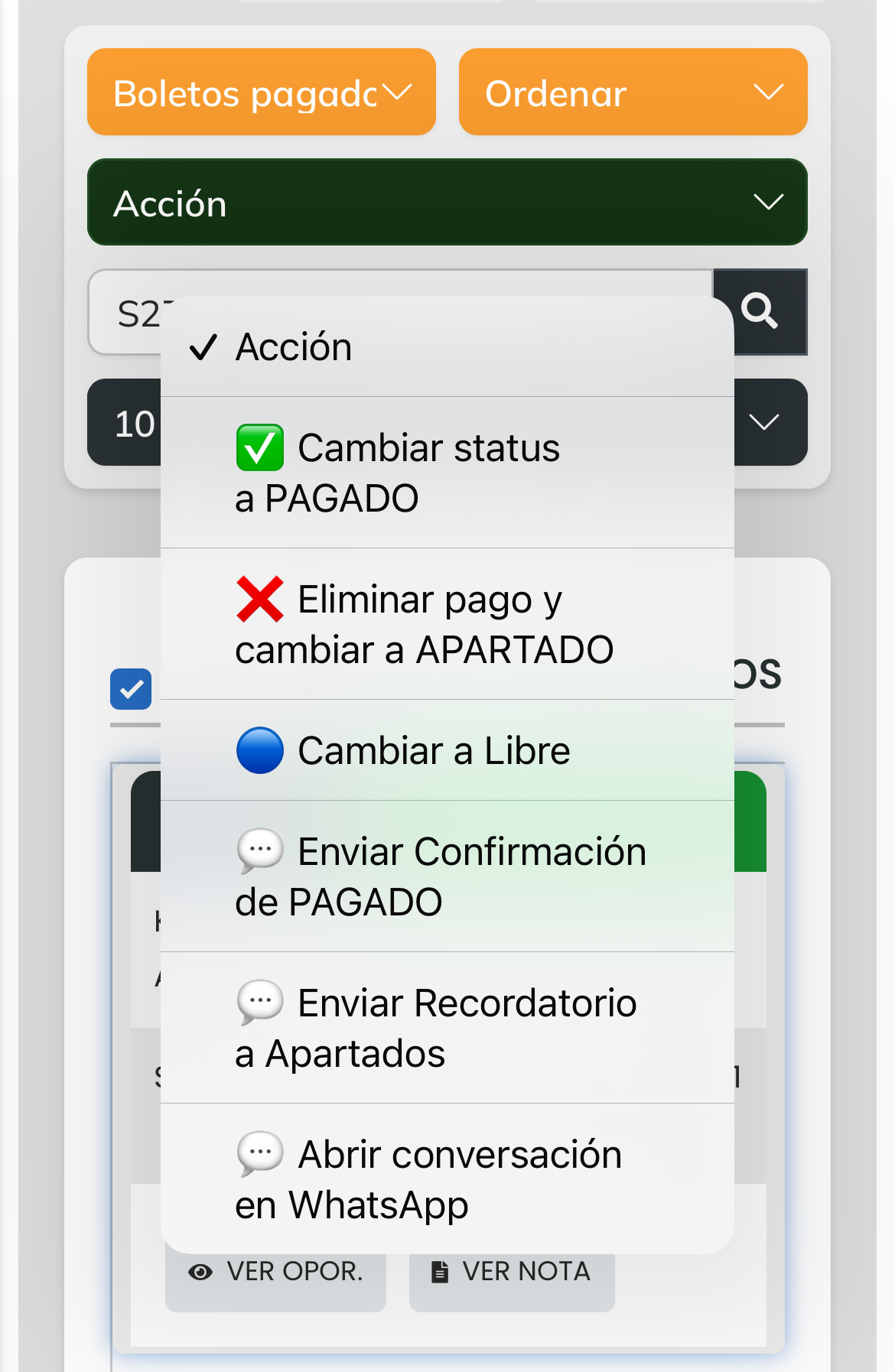 Control total de tus sorteos en un solo lugar: localiza boletos en segundos, actualiza datos de tus participantes, agrega notas estratégicas y comunícate al instante por WhatsApp para cerrar más ventas.